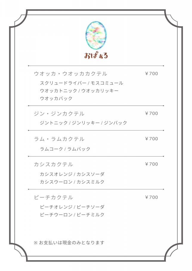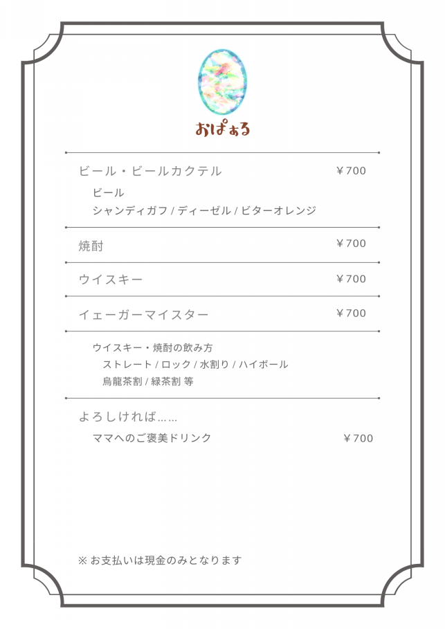 10月は Bar Honey Bunny さん での仮営業となり、メニューが変わります。便乗値上げもございますが、何卒ご理解くださいませ。