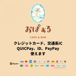 この度、当店でのお支払いにクレジットカード(Visa / Mastercard / Amex / JCB / Diners Club / Discover)、交通系IC(Suica / Kitaca / TOICA / ICOCA / SUGOCA / PASMO / manaca / nimoca)、QUICPay、iD、PayPayをご利用いただけるようになりました。
