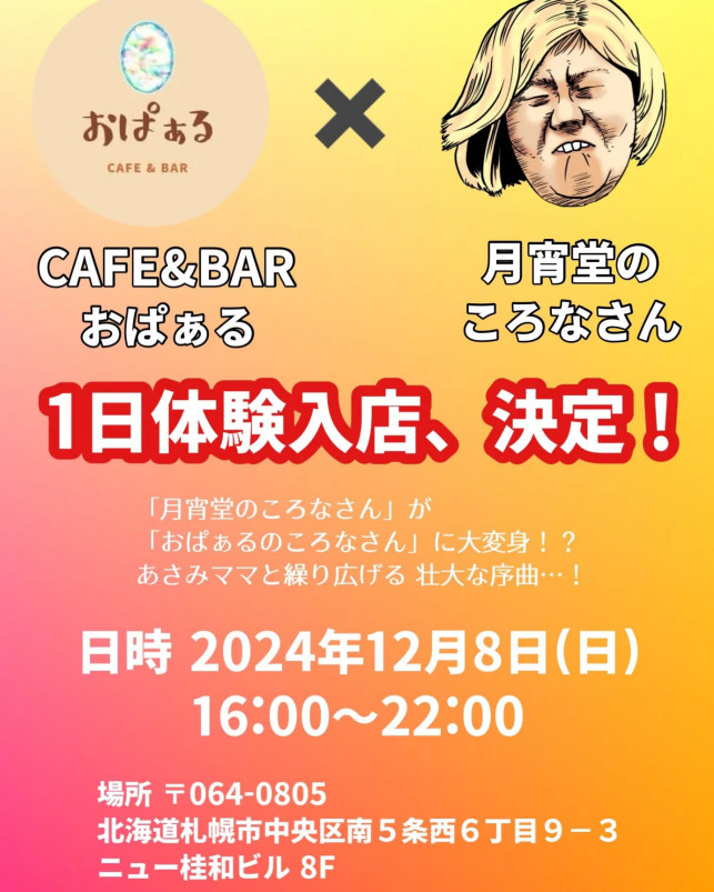 ころなさん体験入店 2024年12月19日 最終更新日時 : 2026年1月22日 cafebaropal Cafe & Bar おぱぁるでございます。 12月8日はころなさん体験入店です。 どうぞ遊びにいらしてくださいませ。お待ちしております。 FacebookXBlueskyHatenaCopy