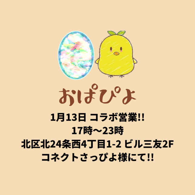 1月13日はコネクトさっぴよ様にてコラボ営業をいたします。