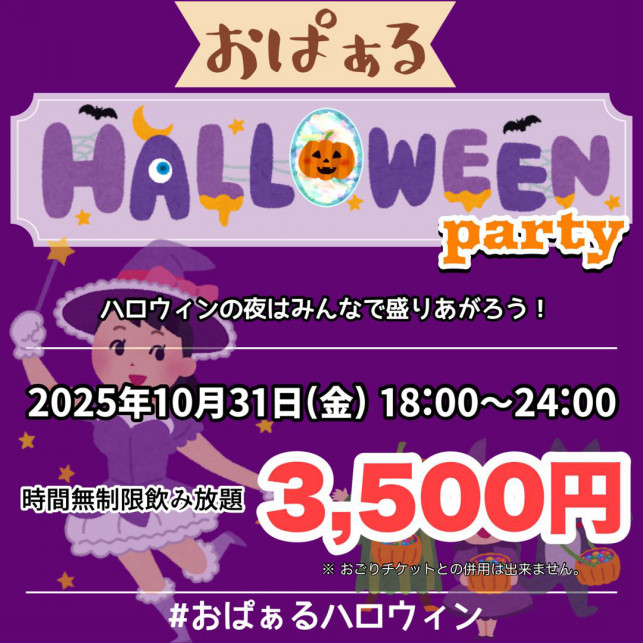 31日はハロウィンパーティー!! 時間無制限飲み放題3,500円です!!