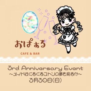 3/30(日)は三周年イベントです。 例年通り(!?)、メイド服を着る予定ですが、ロングのメイド服が間に合えばくるくるストンできるかも……!?