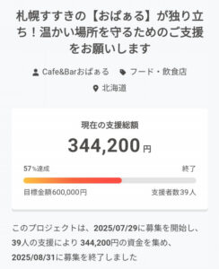 クラウドファンディング終了致しました? のべ39名様から34万円余りのご支援を賜りました。本当にありがとうございました?