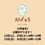 17日(日)はちょっと長めの23時まで、18日(月祝)はちょっと短めの21時まで営業でございます。